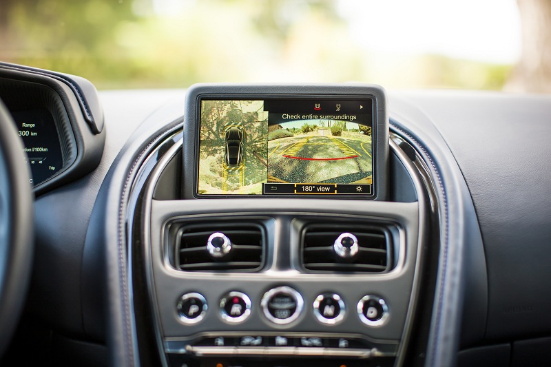 Không chỉ thừa hưởng công nghệ động cơ mới từ các kỹ sư Daimler, Aston Martin còn có thiết kế chăm chút đến từng chi tiết đẳng cấp ở phần nội thất. Màn hình trung tâm kích thước 12 inch kết hợp với một màn hình cảm ứng 8 inch ở vị trí trung tâm bảng táp lô thể hiện các thông số và điều khiển hầu hết hệ thống âm thanh giải trí, các chức năng trên siêu xe. Màn hình trung tâm còn kết nối với hệ thống camera 360 xung quanh giúp người điều khiển dễ dàng quan sát các vị trí điểm mù. Đặc biệt Aston Martin còn được trang bị hệ thống âm thanh “khủng” từ đối tác Bang& Olufsen. Xe sử dụng la giăng kích thước 20 inch bọc trong lốp Bridgestone.