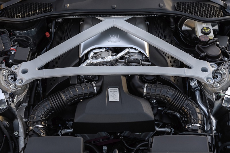 Thật thú vị, chiếc xe này cũng có giá gắn động cơ mới, cho phép các kỹ sư của Aston Martin đặt V8 càng thấp càng tốt để có trọng tâm tôi ưu hóa ở trung tâm. Ngoài ra, thiết kế nhỏ gọn và trọng lượng nhẹ của động cơ V8 đã giúp trọng lượng không tải của chiếc xe giảm xuống mức ấn tượng 1760 kg, tương đương giảm 115 kg.