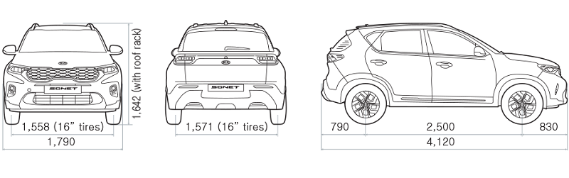 Do kích thước nhỏ gọn, Kia Sonet có thể thoải mái di chuyển trên những con phố hẹp và dễ dàng vào những bãi đậu chật hẹp. Ngoài ra, do có chiều dài cơ sở 2500 mm nhưng không gian nội thất lại được bố trí rất hợp lý. Chỗ để chân phía sau ở mức trung bình (ít nhất là ngang bằng với các đối thủ trong phân khúc này), nhưng khoảng không gian trong xe (với dung tích 392 lít ) lớn hơn đáng kể so với các đối thủ cạnh tranh