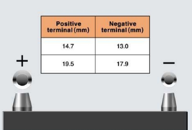 - Đường kính của cực: Các cực âm và cực dương của ắc quy có kích thước khác nhau, để tránh việc nối nhầm cực.