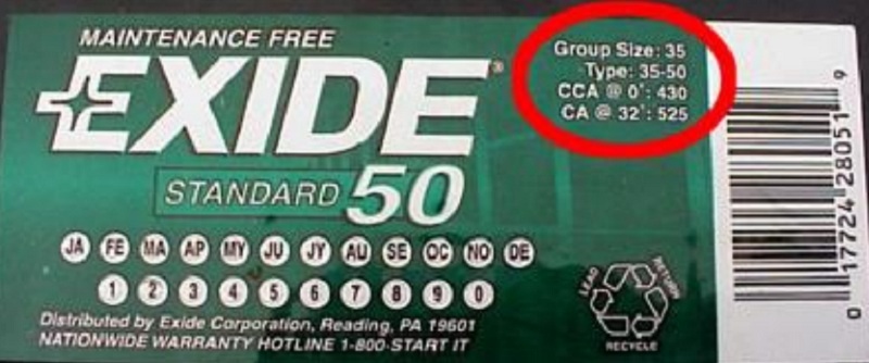 - Các mã nhận dạng ắc quy, được đánh dấu trên thân ắc quy, cho biết kích thước của ắc-quy và tính năng, khả năng lưu trữ điện năng.