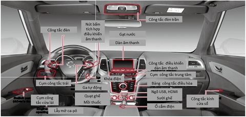 Điều khiển gương chiếu hậu ngoài xe Công tắc gương gập/ mở/tự động Xoay nút sang phải/trái để chỉnh gương bên phải/trái Ấn nút lên /xuông/ ph...
