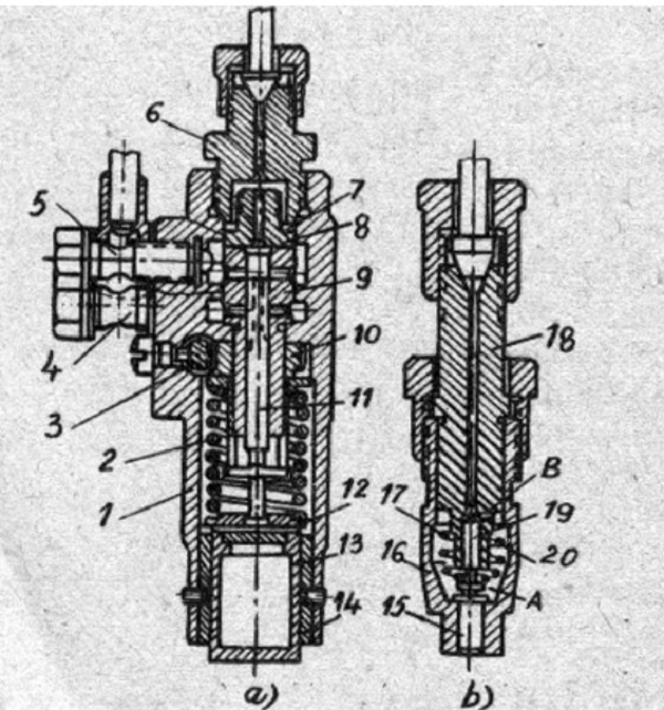 14-Đệm; 15-Đầu bơm; 16-Bộ phận định lượng; 17-Đệm; 18-Lò xo con đội.