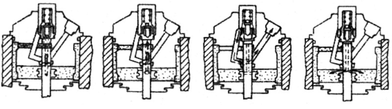 Nhiên liệu bắt đầu được nén lại khi piston đóng cửa 10 và kết thúc vào thời điểm cạnh