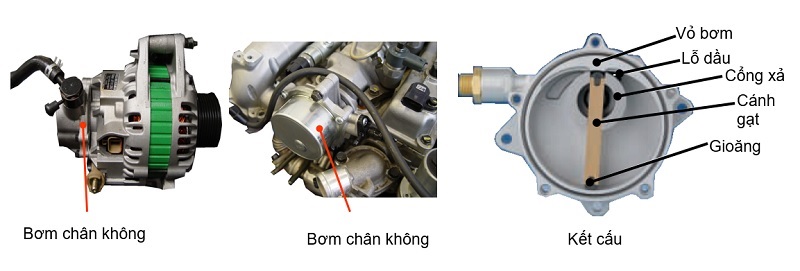 Bơm chân không là bộ phận có thể được lắp và dẫn động cùng với máy phát, nó cũng có thể được lắp và dẫn động bằng trục cam. Bên trong bơm chân không có các cánh gạt lệch tâm, hai đầi cánh gạt có gioăng bịt kín, để bôi trơn các chi tiết bên trong có một đường cấp dầu bôi trơn.