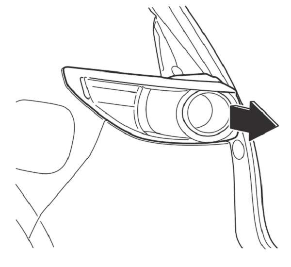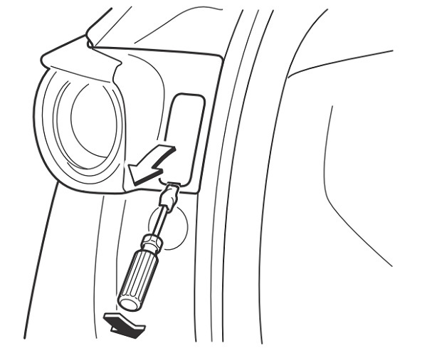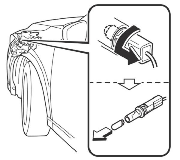 2. Nếu tiến hành thay thế bóng đèn phải, khởi động động cơ và xoay hết hành trình vô-lăng sang trái, và tắt động cơ. Nếu thay bóng đèn trái thì xoay vô-lăng sang phải.