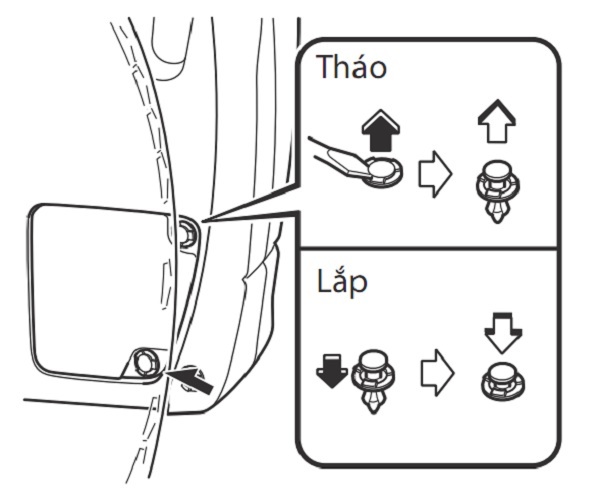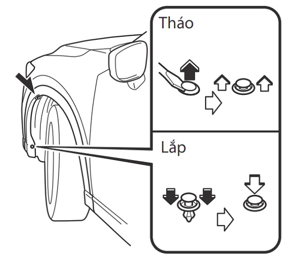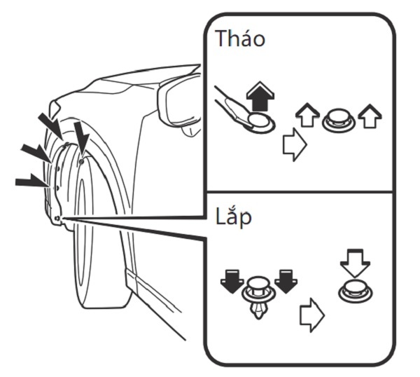 4. Tháo chốt nhựa bằng tua-vít nhỏ dẹp và tháo các chốt giữ còn lại, và sau đó tháo tấm chắn ra.