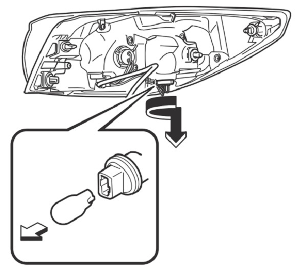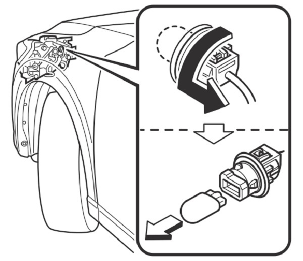 3. Xoay cụm bóng đèn và đuôi đèn ngược chiều kim đồng hồ và tháo nó ra.