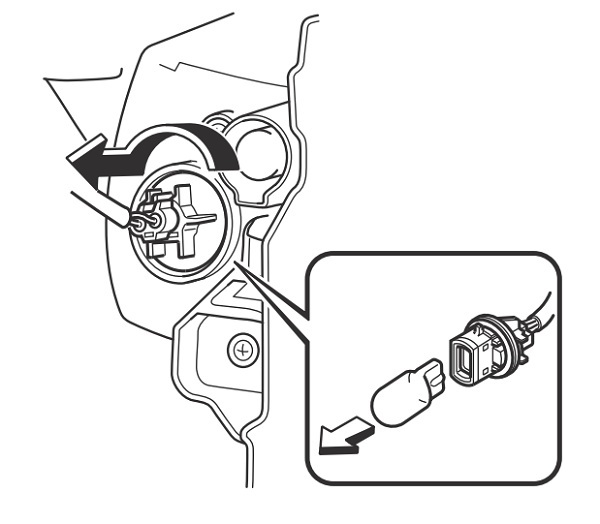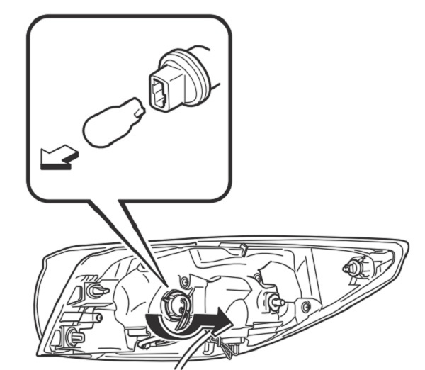 5. Xoay cụm bóng đèn và đuôi đèn ngược chiều kim đồng hồ và tháo nó ra.