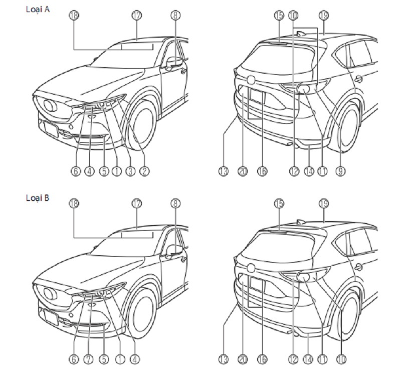 VỊ TRÍ CÁC LOẠI ĐÈN TRÊN XE Ô TÔ