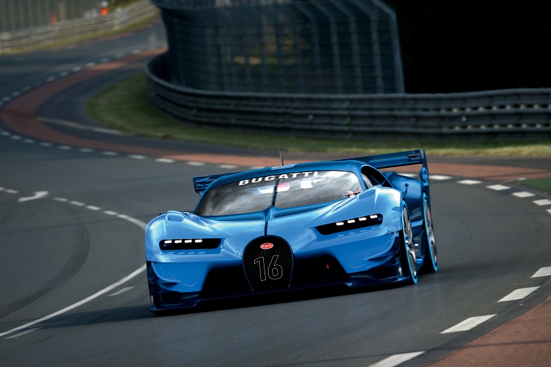 Sau khi toàn bộ số lượng sản xuất của Veyron đều được bán hết, Bugatti giới thiệu mẫu concept Vision Grand Turismo tại Frankfurt Motor Show 2015. Được thiết kế cho game thực tế ảo của Gran Turismo 6, mẫu concept gần như sát với phiên bản sản xuất.