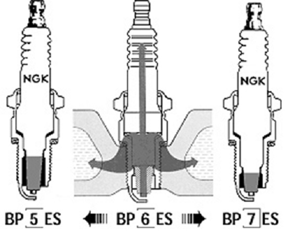 1. Bugi loại nóng: Bề mặt bugi tiếp xúc với khí cháy lớn, loại bu gi này truyền nhiệt chậm nhưng thời gian sấy nóng bugi ngắn.