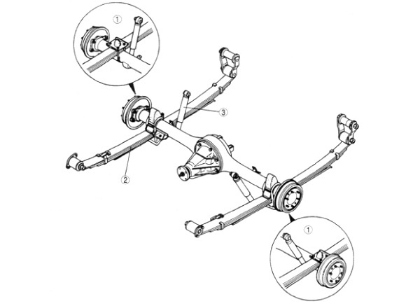 • Cơ cấu treo bằng nhíp vững trắc được dùng cho cầu sau.
