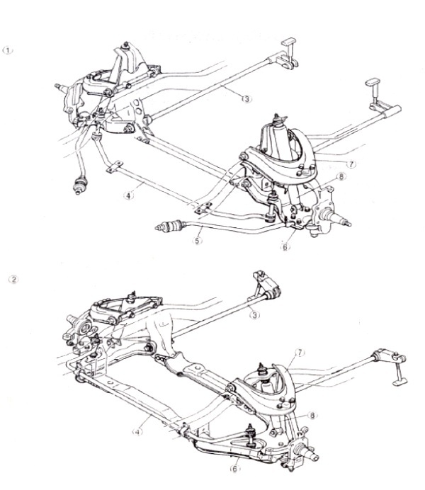 - Thanh xoắn (Torsion bar spring) áp dụng cho cả hai loại xe: Hai cầu chủ động (4x4); Một cầu chủ động (4x2).