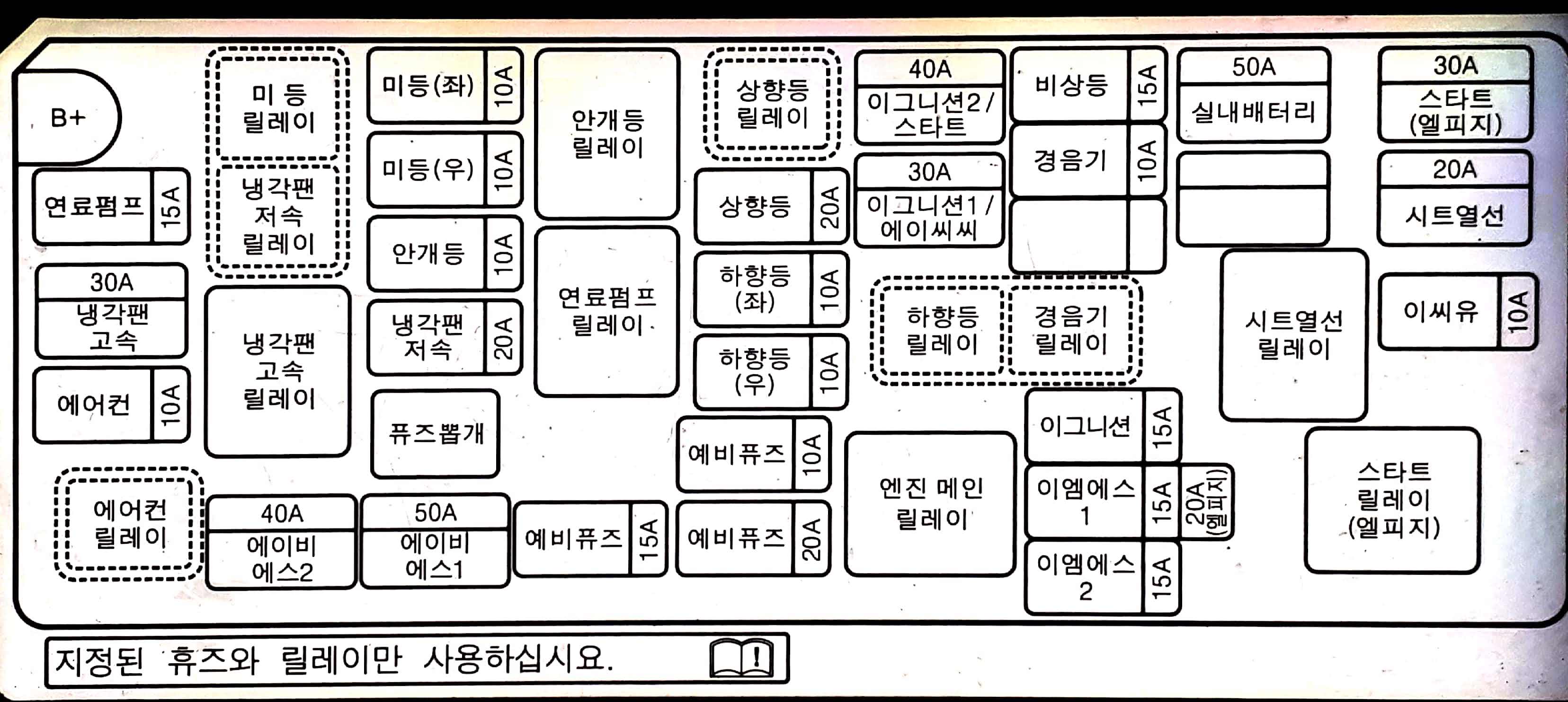 Ký hiệu hộp cầu chì, rơ le trên xe Spark và Matiz 4 - tiếng Hàn Quốc