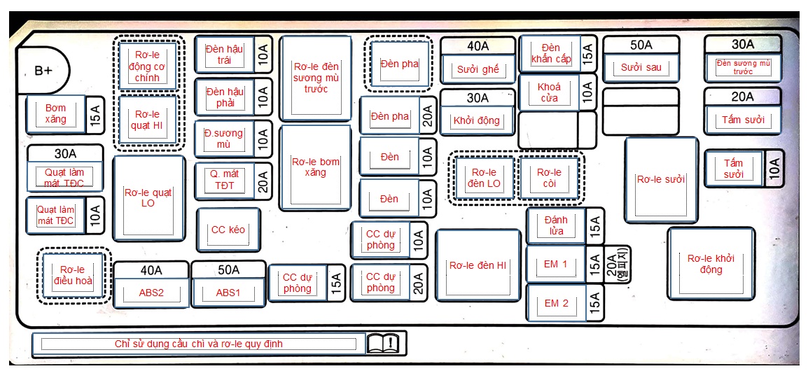 Giải thích ký hiệu hộp cầu chì, rơ le trên xe Spark và Matiz 4