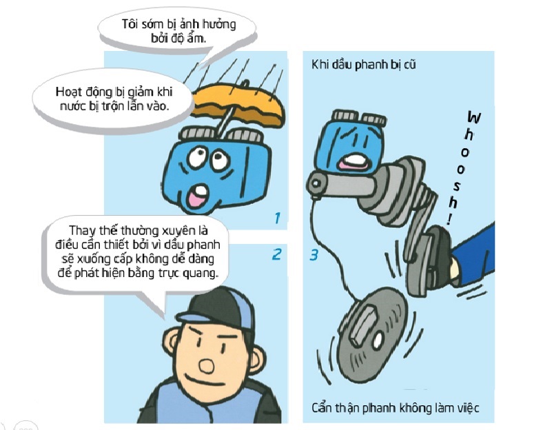 Sau một thời gian làm việc dầu phanh, dầu côn có thể hút ẩm, bị phân hủy biến chất và làm hư hỏng các cuppen, seal phanh. Vì vậy, cần thay thế dầu phanh, dầu côn để đảm bảo độ an toàn của hệ thống phanh, côn xe ô tô trong quá trình hoạt động.