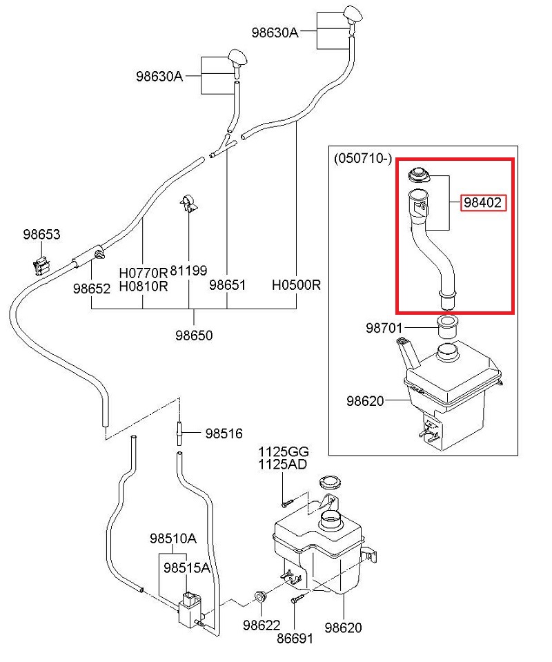 Hình ảnh thực tế chi tiết cổ đổ nước rửa kính liền nắp 98622-1C500 ở trên xe