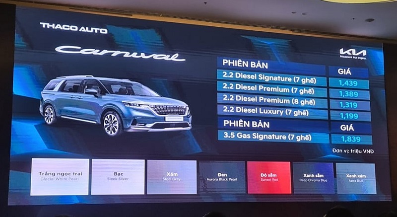 Bảng giá xe KIA Carnival 2022