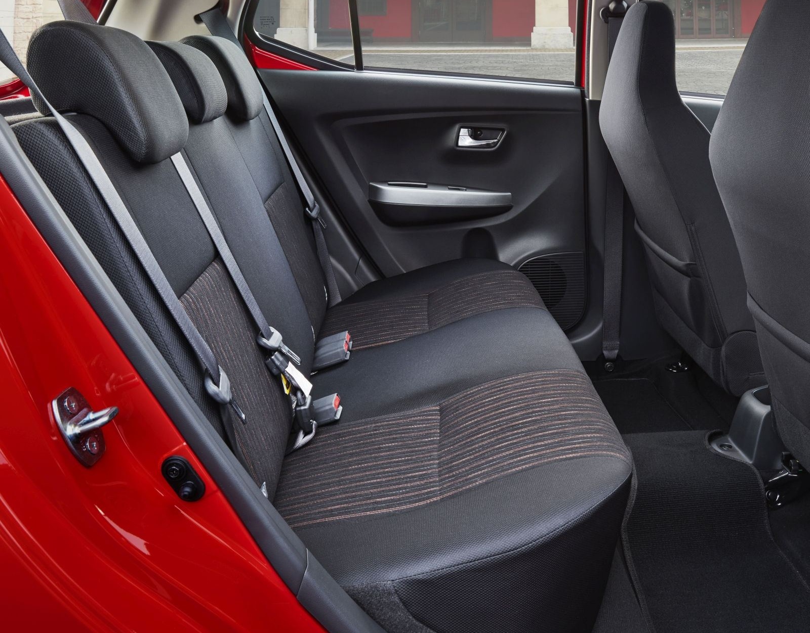 Đi vào khoang nội thất của Toyota Wigo 2023, các chi tiết được thiết kế chủ yếu bằng chất liệu nhựa. Cửa gió điều hoà không có gì thay đổi so với phiên bản cũ. Vô lăng ba chấu cùng với một số phím tích hợp chức năng cho xe. Đồng hồ với thiết kế đơn giản nhưng thể hiện được hết những thông số cân thiết. Ghế trước được hỗ trợ chỉnh 4 hướng bằng tay. Ghế sau có thể gập gọn để tăng không gian cho xe.