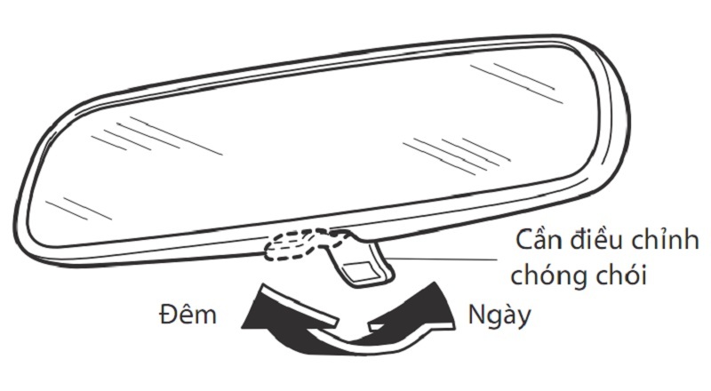 Điều chỉnh gương chóng chói, điều chỉnh thanh chỉnh gương sáng vị trí ban ngày.
