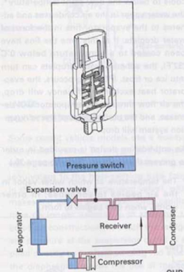 Được lắp giữa bình chứa và van giãn nở, nó phát hiện áp suất phía cao áp của mạch làm lạnh và ngắt lý hợp từ khi áp suất không bình thường, tắt lốc điều hòa để tránh hư hỏng có thể xảy ra đối với các chi tiết của hệ thống.