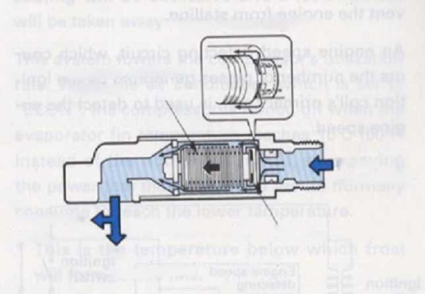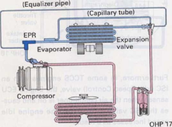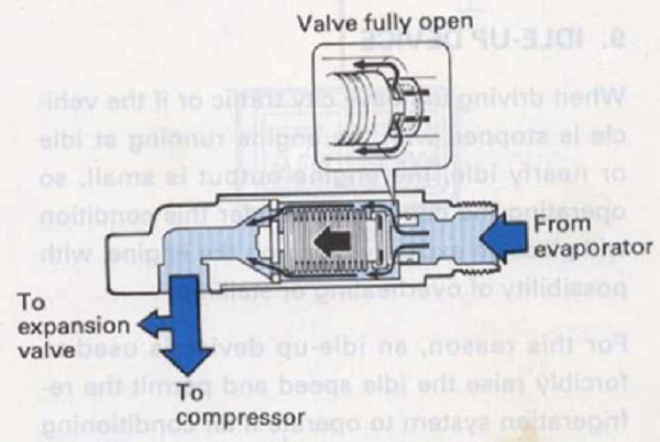 Lượng ga từ giàn lạnh vào lốc điều hòa được điều chỉnh và áp suất trong giàn lạnh được duy trì ở 2,0 kgf/cm2 hoặc cao hơn để nhiệt độ cánh giàn lạnh không giảm xuống dưới 00C