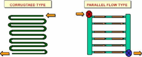 Két sưởi được làm từ các ống và cánh tản nhiệt.