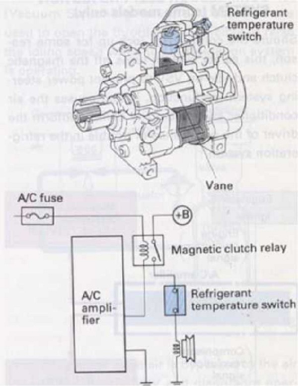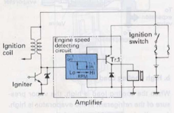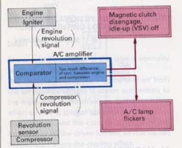 Nếu lốc điều hòa hoạt động khi động cơ đang chạy không tải, công suất động cơ sẽ nhỏ và có thể chết máy. Thiết bị này sẽ ngắt ly hợp từ khi tốc độ động cơ giảm xuống dưới giá trị xác định để ngăn không cho chết máy.