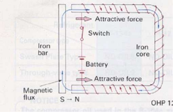 Ly hợp từ bao gồm một stato, một rôto với puly và một đĩa ép để nối với puly dẫn động và lốc điều hòa bằng lực từ.