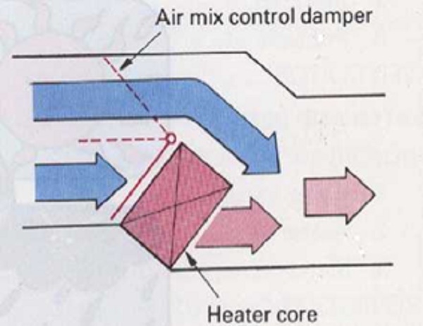Kiểu này dùng một van để điều khiển trộn khí để thay đổi nhiệt độ không khí bằng cách điều khiển tỉ lệ lạnh đi qua két sưởi và tỷ lệ khí lạnh không qua két sưởi.