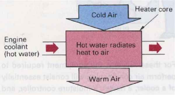 Tất nhiên, do nước làm mát đóng vai trò là nguồn nhiệt nên két sưởi sẽ không nóng lên khi động cơ còn nguội. Vì vậy, nhiệt độ không khí thổi qua bộ sưởi sẽ không tăng.