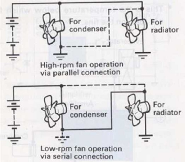 Hình 1.38. Sơ đồ hệ thống điện của quạt điện giàn nóng và két nước.