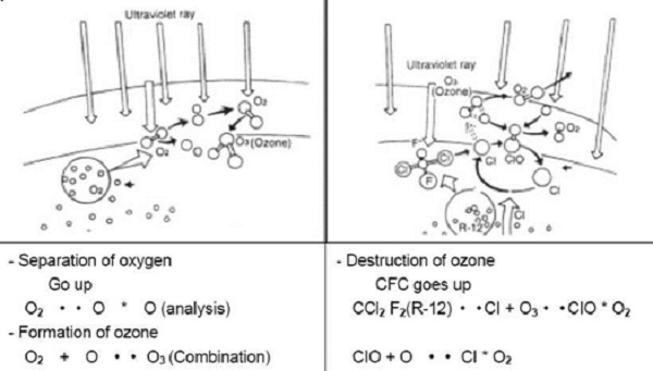 Hình 1.9. Sự hình thành và phá hủy tầng ozone.