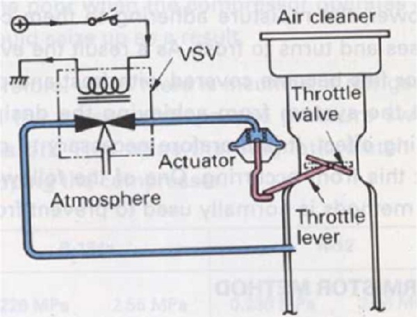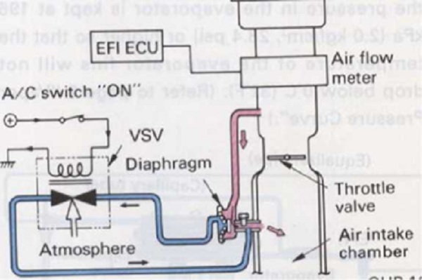 Trong động cơ EFI, do không khí được đi tắt đến khoang nạp khí khi VSV và màng hoạt động. Vì vậy, tốc độ không tải của động cơ tăng.