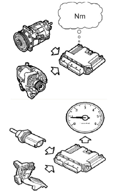 Các chức năng sau đây có thể yêu cầu mô men xoắn từ động cơ: Chân ga, Chế độ chạy, TCS/ESP, Điều hòa và máy phát, Chế độ chạy không tải, Ma sát bên trong động cơ,Chức năng giảm chấn ...