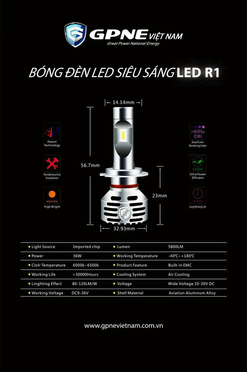 Thông tin bóng led GPNE LED R1/R3 là giải pháp tăng sáng SỐ 1 cho đèn pha ôtô. Tự tin là sản phẩm đèn LED với chất lượng hàng đầu hiện nay, LED R1/R3 thương hiệu GPNE hoàn toàn dẫn đầu cuộc đua về độ sáng, độ bền so với các sản phẩm LED khác trên thị trường.