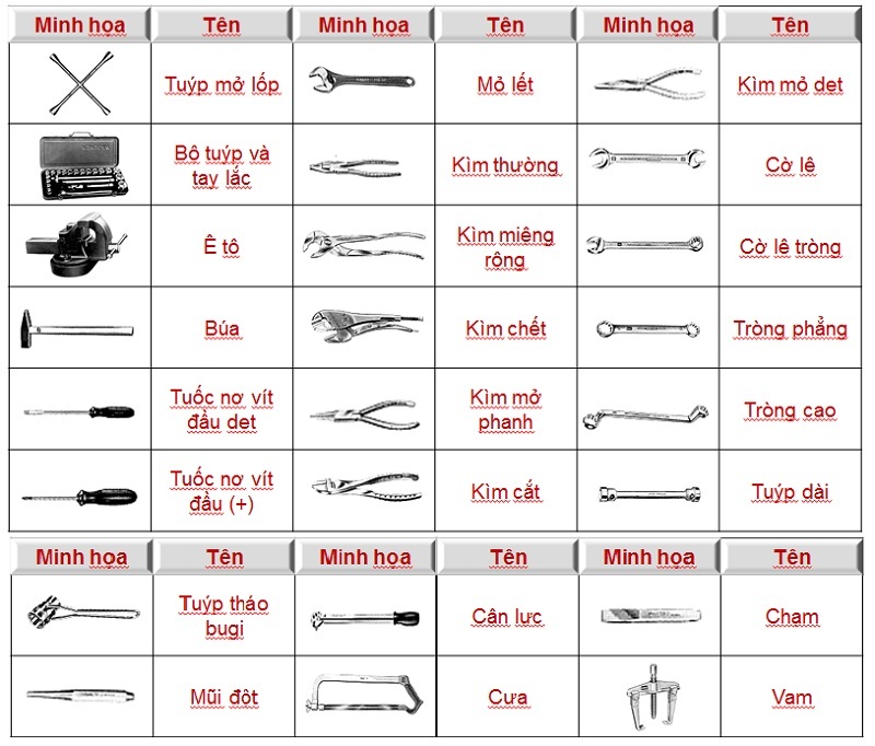 Các loại dụng cụ thông dụng sửa chữa ô tô