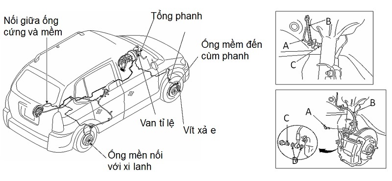 Sơ đồ bố trí các đường ống phanh trên xe ô tô