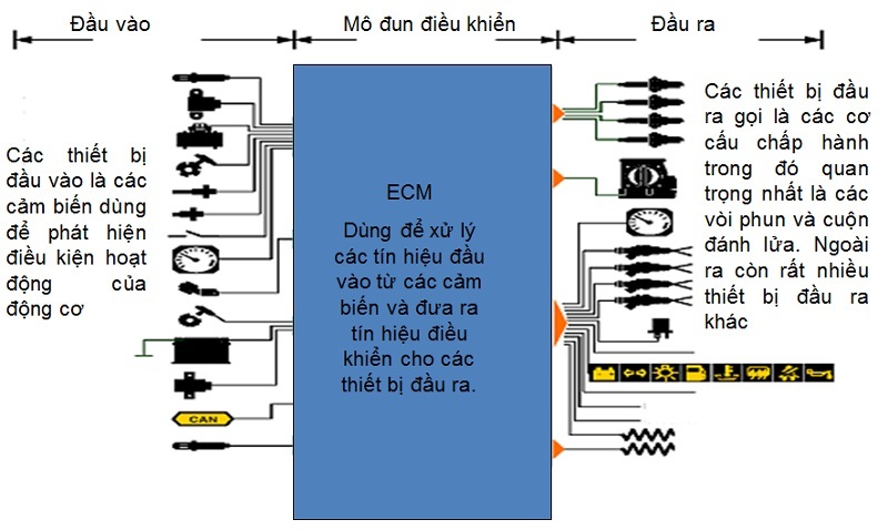 ECM nhận các tín hiệu đầu vào và xử lý các tín hiệu đầu ra