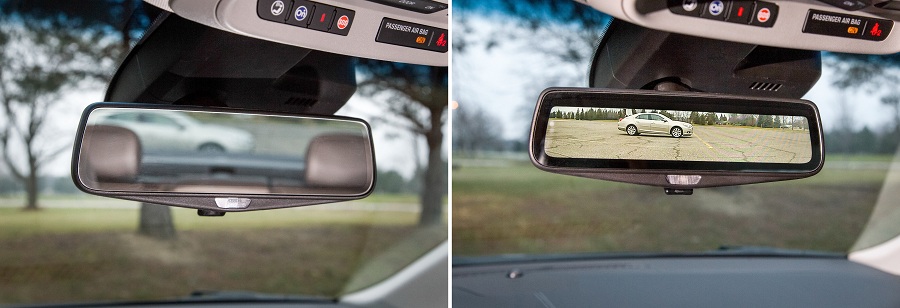 Tesla Motors cho phép tài xế kiểm tra tình hình giao thông phía sau qua camera cung cấp hình ảnh vào màn hình định hướng 17-inch trên Model S.