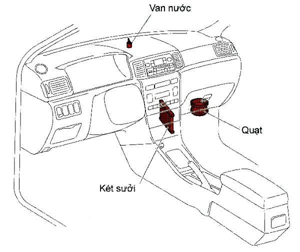 - Hệ thống sưởi: Bao gồm van nước, két sưởi (Bộ phận trao đổi nhiệt), quạt giàn lạnh.