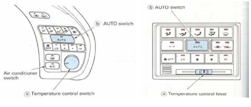 - Công tắc hay cần gạt điều khiển nhiệt độ: dùng để đặt nhiệt độ trong xe như mong muốn.