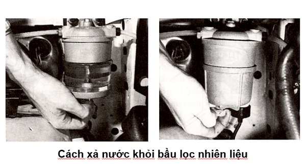 Bước 1: Cách xả nước khỏi bầu lọc nhiên liệu