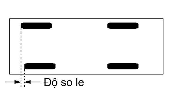 Khi một bánh trước bị lùi lại một chút so với bánh còn lại. Với thiết bị chỉ đo độ trùng vết của một cầu xe rất khó phát hiện ra lỗi này và xe thường bị chỉnh lệch tâm. Chỉ có thiết bị kiểm tra độ trùng vết của cả bốn bánh mới dễ dàng phát hiện ra hiện tượng này. Một số thiết bị đo trùng vết cho cả kết quả đo bánh so le, nếu bánh bị so le thì có thể một số chi tiết nào đó của hệ thống treo bị cong.