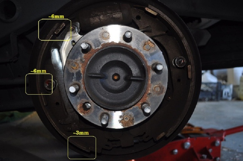 Bước 1: Kiểm tra: độ mòn các má phanh trước, sau, độ mòn (xước) của đĩa phanh, tang trống.