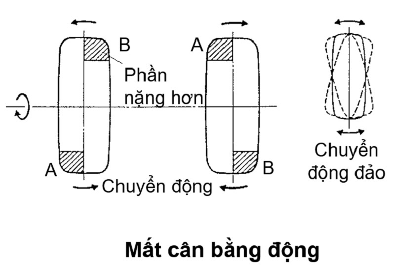 Cân bằng động là thực hiện việc cân bằng lốp xe ô tô khi lốp xe ô tô bị mất cân bằng động. Khi lốp xe ô tô bị mất cân bằng động tức là mất cân bằng hai bên gây đảo theo hai bên lốp.