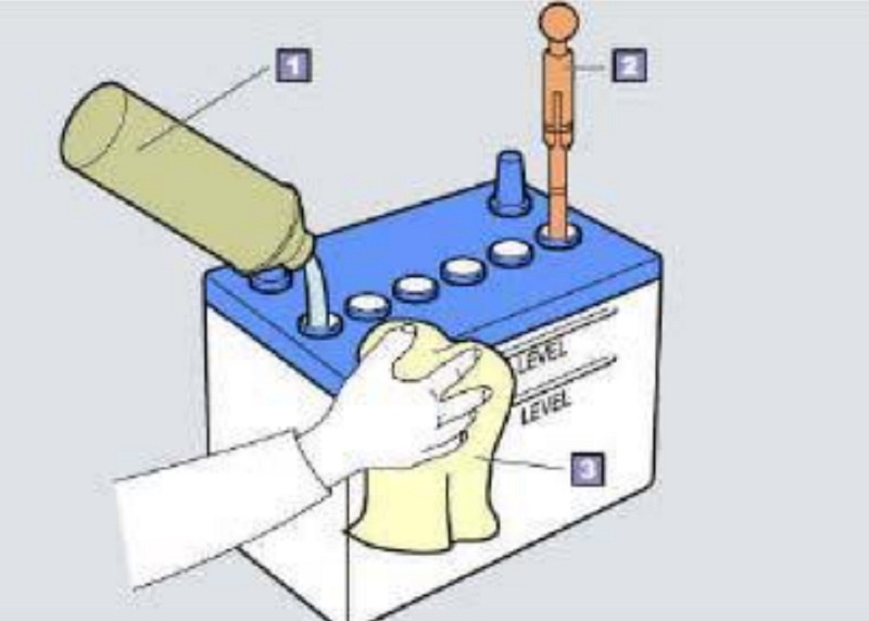 - Rửa ắc quy và lau sạch hơi nước: Không lau khí sinh ra khi nạp và dung dịch ắc quy bắn ra sẽ gây ra rỉ. Do đó, đứng quên lau sạch chúng bằng nước, sau đó lau sạch hơi ẩm.