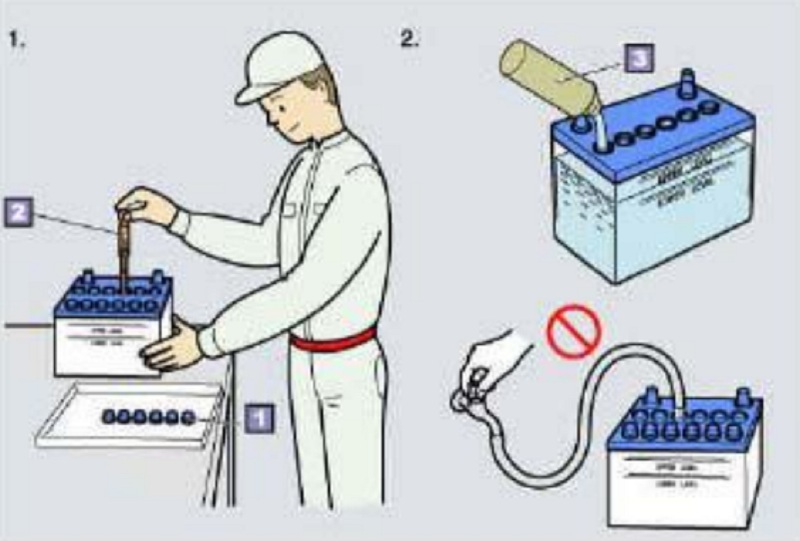 Hình 2.22: Công việc chuẩn bị trước khi nạp ắc - quy