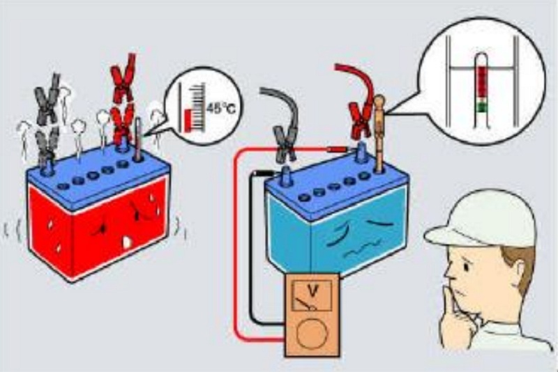 - Bước 3: Kiểm tra nồng độ dung dịch và nhiệt độ của ắc-quy; thao tác này phải được